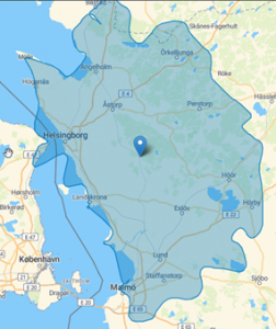 Bjuv, Burlöv, Båstad, Eslöv, Helsingborg, Höganäs, Hörby, Höör, Klippan, Kävlinge, Landskrona, Lomma, Lund, Malmö, Perstorp, Sjöbo, Staffanstorp, Svalöv, Ängelholm, Åstorp.